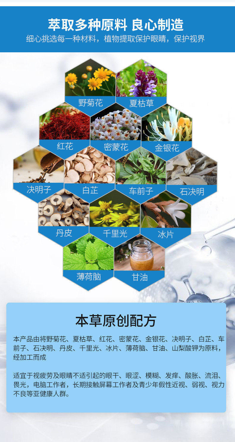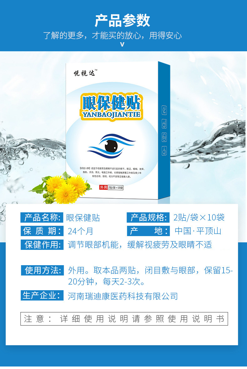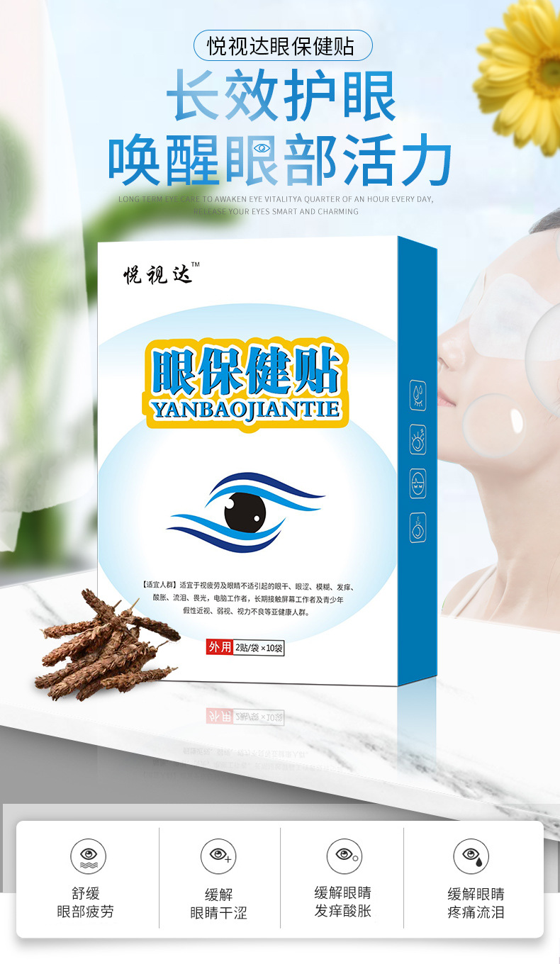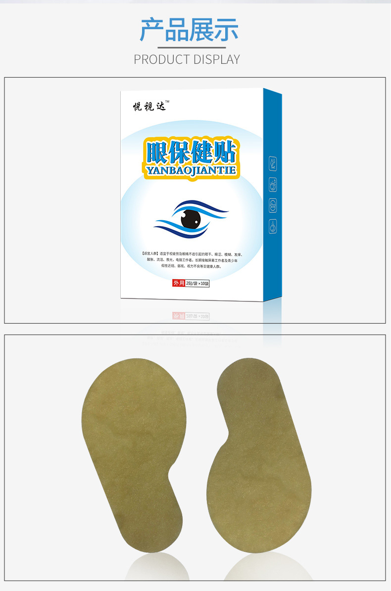 眼保健貼 說明書 [產(chǎn)品名稱]眼保健貼 [產(chǎn)品說明]本產(chǎn)品由將野菊花、夏枯草、紅花、密蒙花、金銀花、決明子、白芷、車前子、石決明、丹皮、千里光、冰片、薄荷腦、甘油、山梨酸鉀